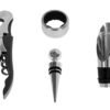 • Incluye: Sacacorchos, vertedor, tapón y argolla cortagotas metálicos