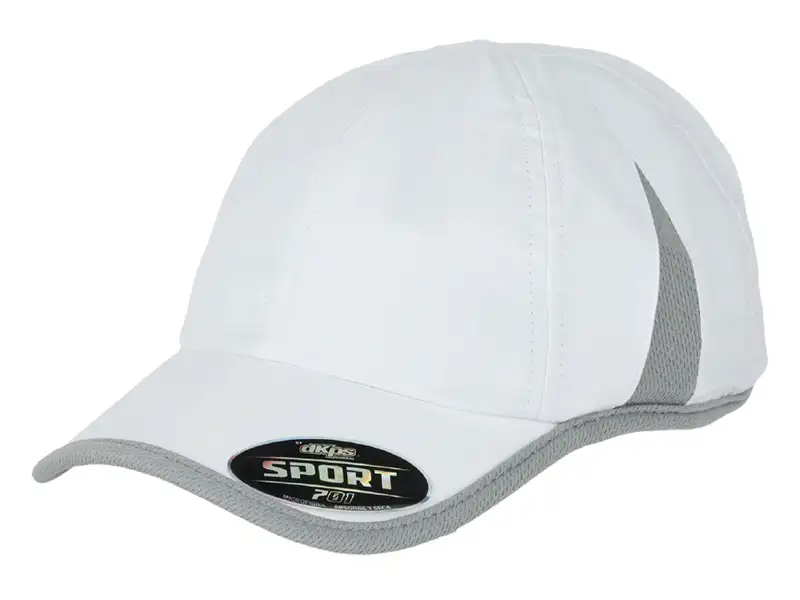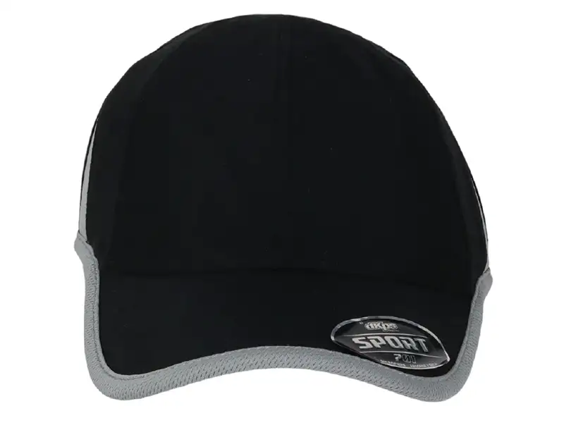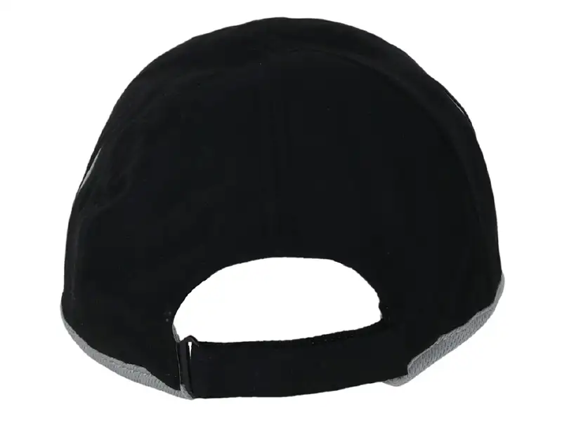 Diseño de 6 gajos con contorno lineal en contraste y etiqueta en visera.