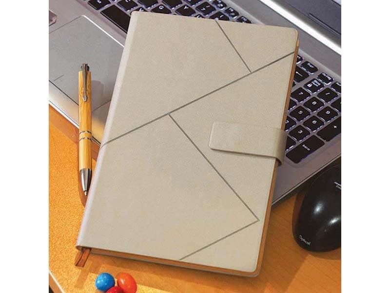 Incluye cinta divisoria de seda y porta bolígrafos elástico integrado.