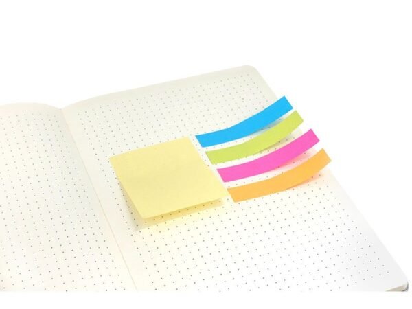 Contiene 4 bloques de banderillas estrechas (6.5 x 1.2 cm) para marcaje visual.