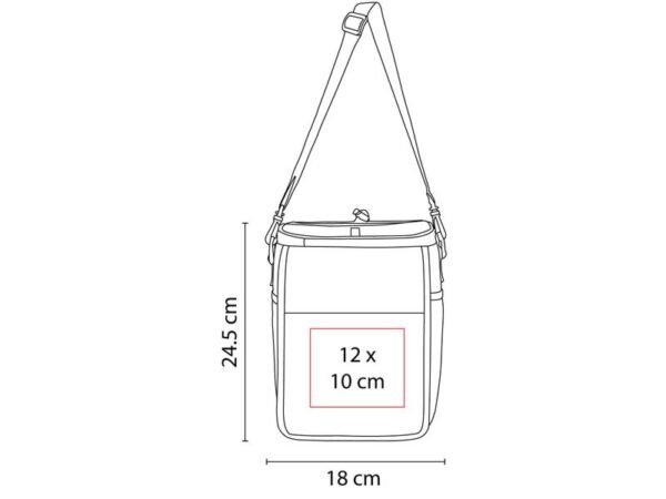 Medidas compactas de 18 x 24.5 cm, perfecto para días de campo y eventos sociales.