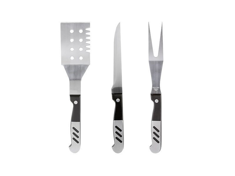 Incluye 3 utensilios profesionales en acero inoxidable: cuchillo, espátula y tenedor.