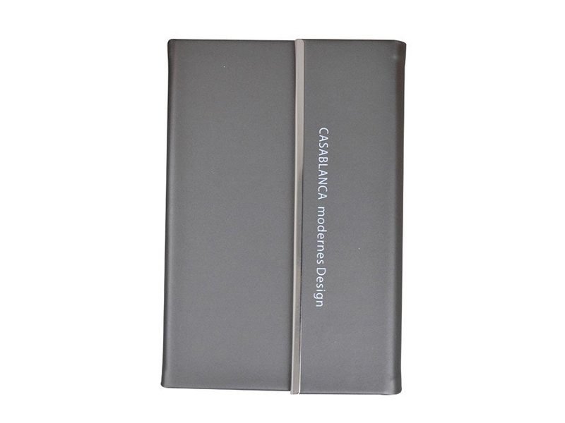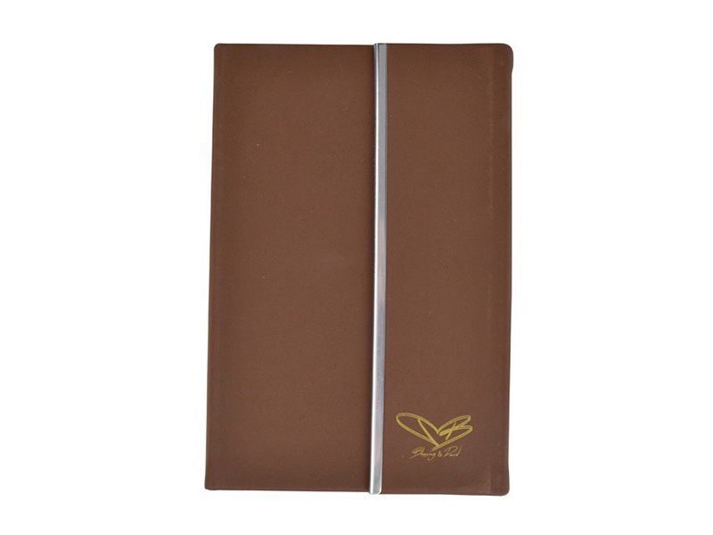Libreta con diseño exclusivo de filo metálico y cierre magnético de seguridad.