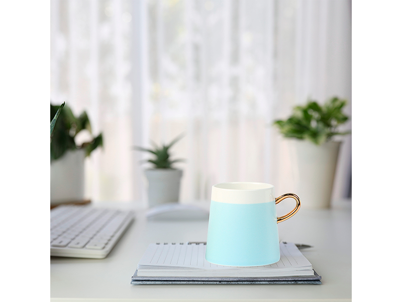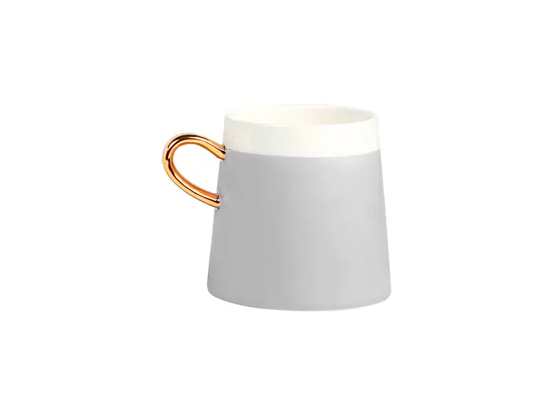 Diseño sofisticado en cerámica con asa en terminado dorado de lujo.