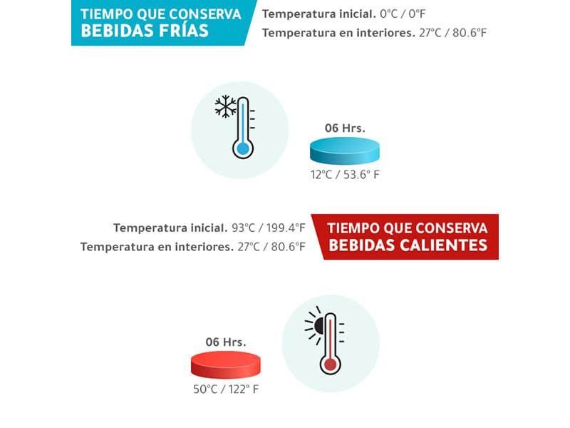 Tecnología de doble pared que mantiene la temperatura sin quemar las manos.