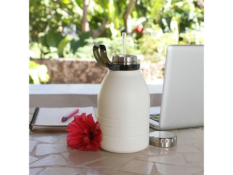 Máxima capacidad de 1,500 ml fabricada en acero inoxidable de doble pared.