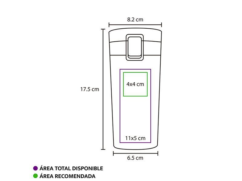 Capacidad de 350 ml con diseño compacto y portátil de 17.5 x 6.5 cm.