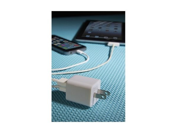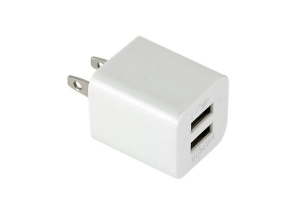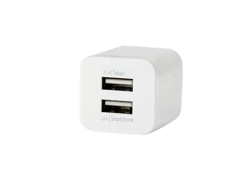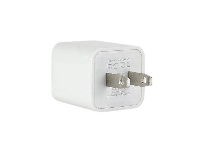 Adaptador de corriente con doble entrada USB para smartphone y tablet.