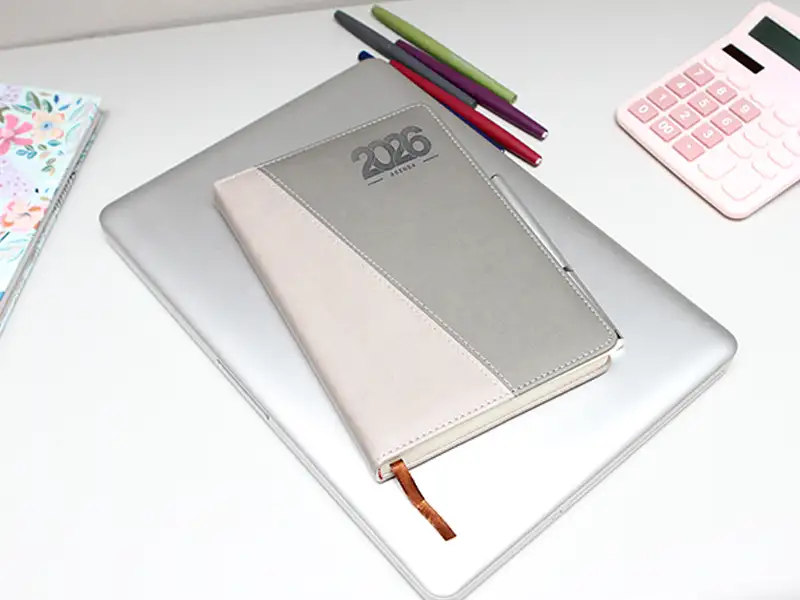 Set de Agenda diaria 2026 bi-tono con pluma y caja de regalo. Cubierta bi-tono