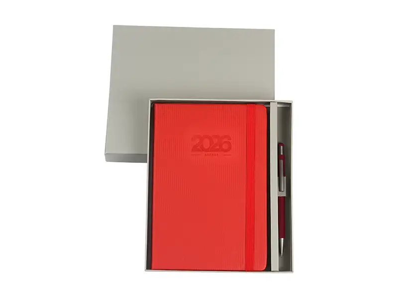 Set de Agenda diaria 2026 con pluma y caja de regalo. Cubierta fabricada en curpiel (PU)
