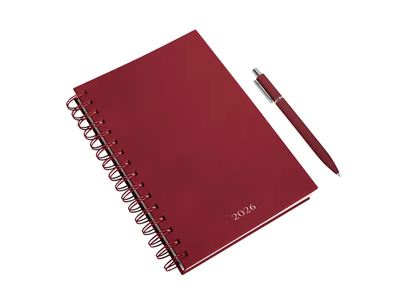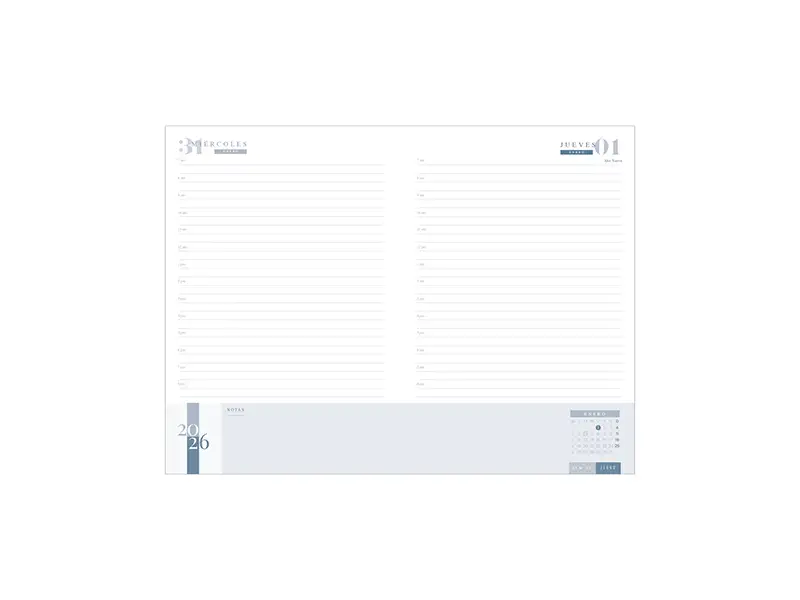 Agenda diaria con 174 hojas. Contiene datos personales, calendarios 2025, 2026 y 2027