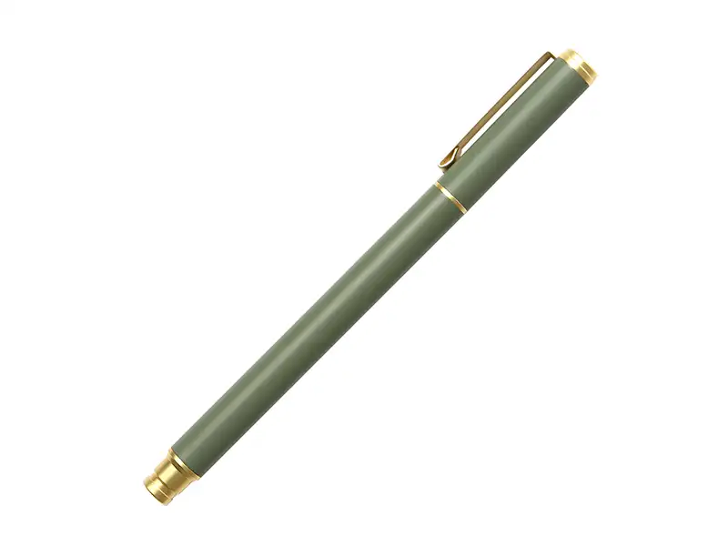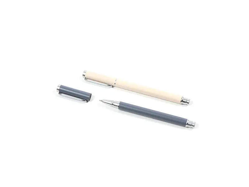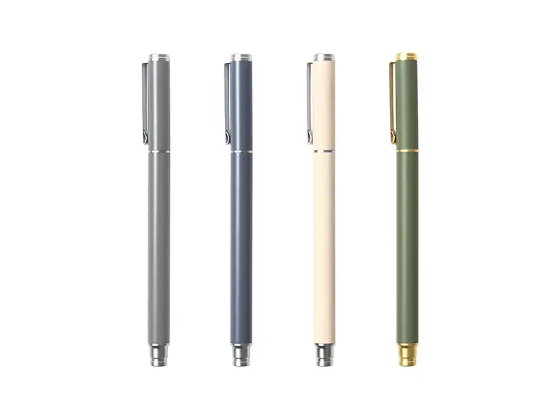Bolígrafo de metal, cuerpo rociado metálico, adornos cromados satinados,