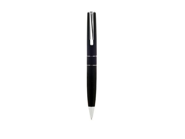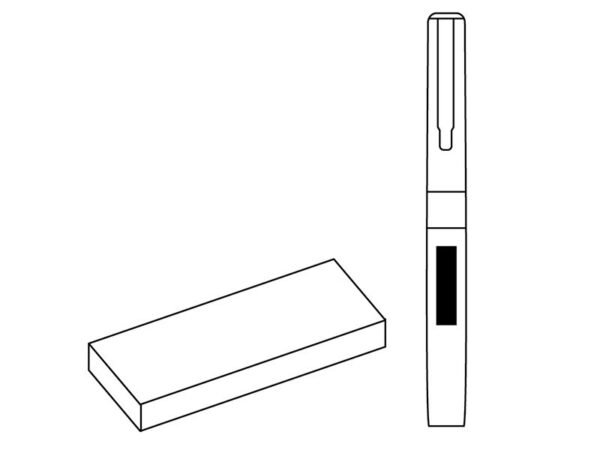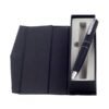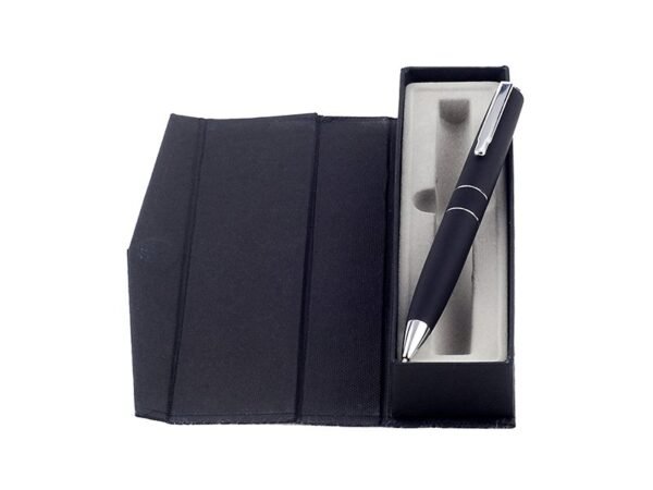 Cuerpo metálico engomado. Clip y detalles metálicos color plata. Estuche con cierre magnético.