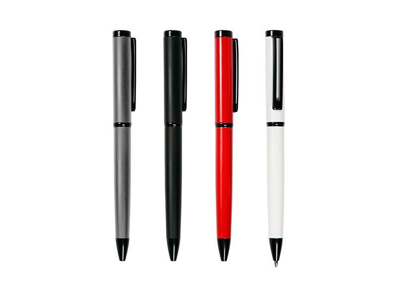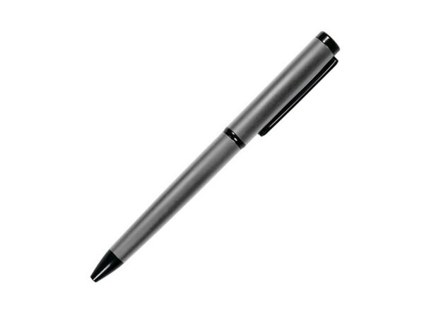 Bolígrafo twist tipo barrel de acero inoxidable, clip de acero y tinta negra alemana, rinde hasta 800 mts.