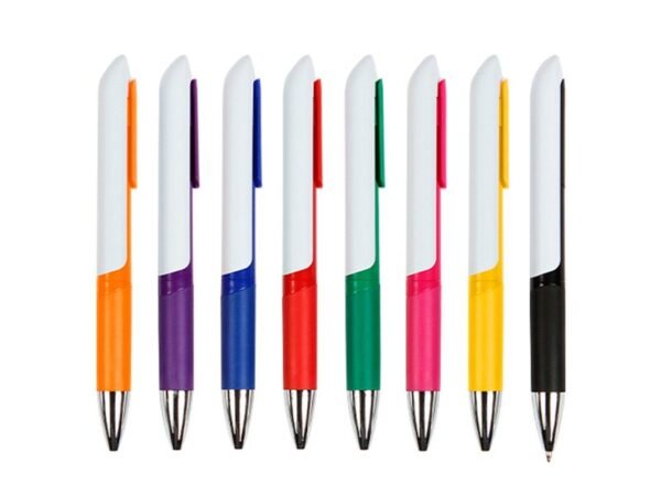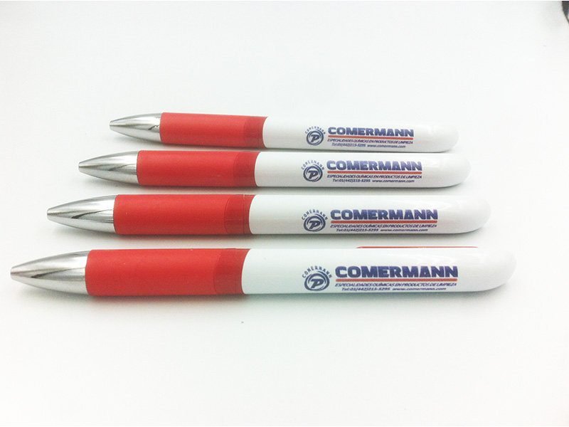 BOLIGRAFO DE PLASTICO TWIST TIPO BALL PEN CON AGARRE DE GOMA, TINTA AZUL.