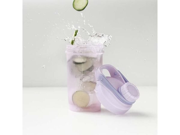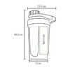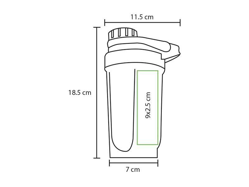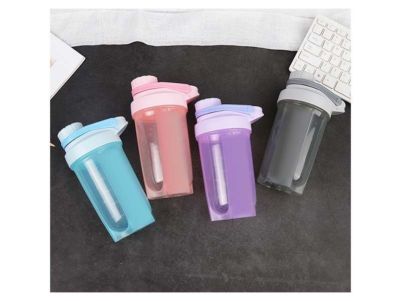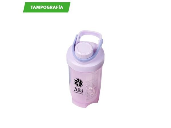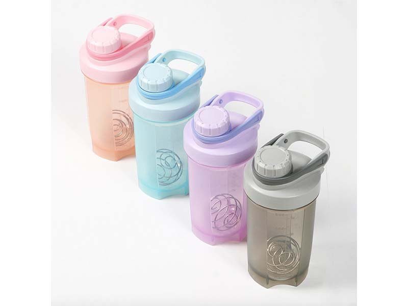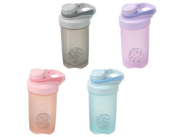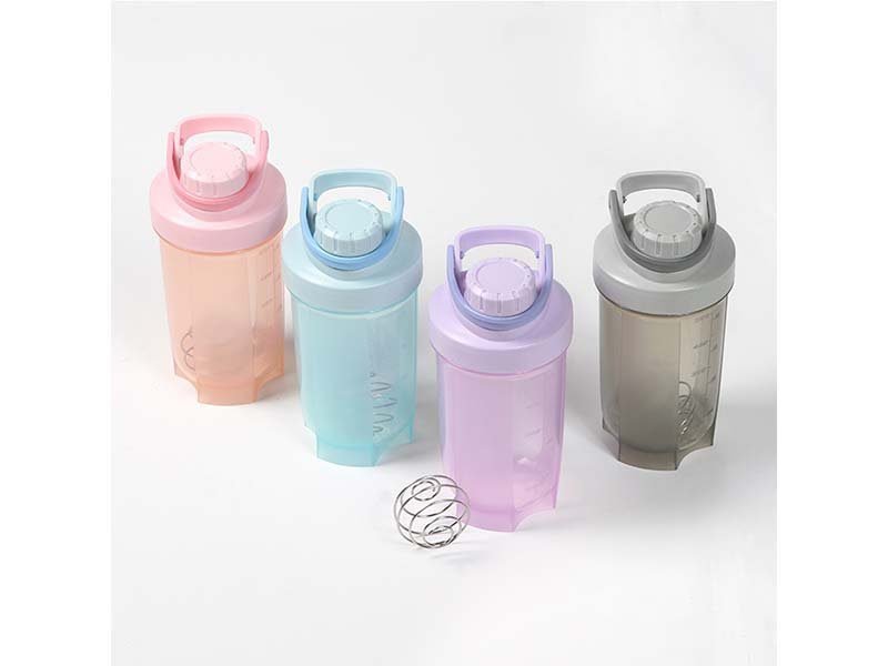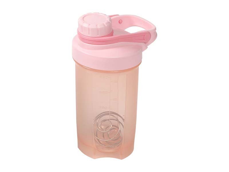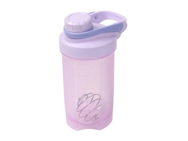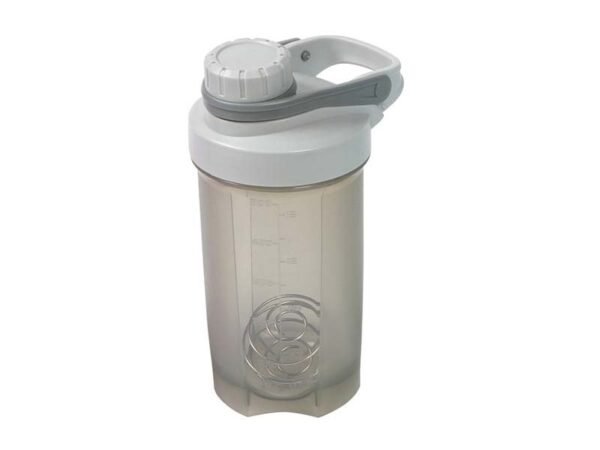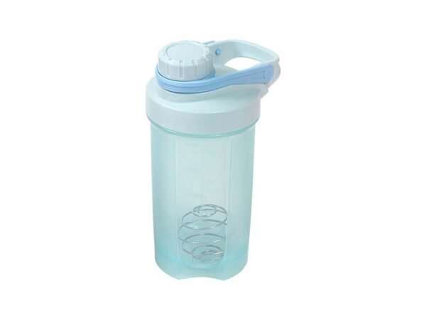 Botella mezcladora fabricada en polipropileno con agitador metálico.