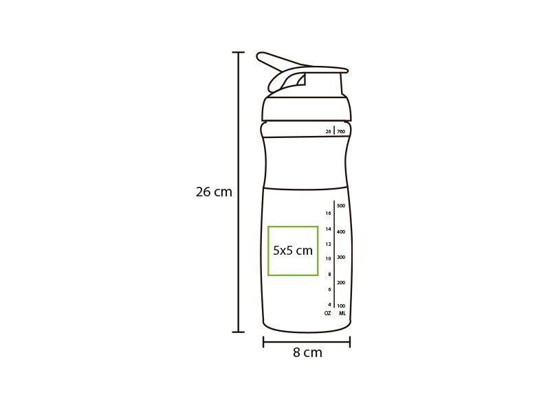DESCRIPCION: BOTELLA MEZCLADORA, MEDIDOR EN MILILITROS Y ONZAS, CAPACIDAD 760 ML