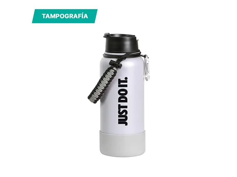 Rendimiento y Estabilidad Táctica: Botella de 1 litro fabricada en acero inoxidable de doble pared con base de silicón para protección contra impactos y deslizamientos.
