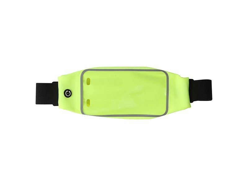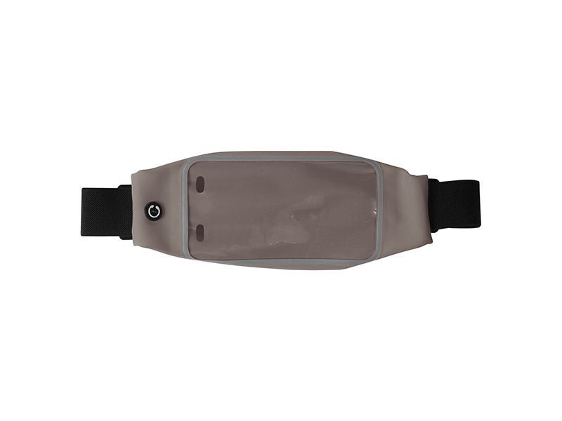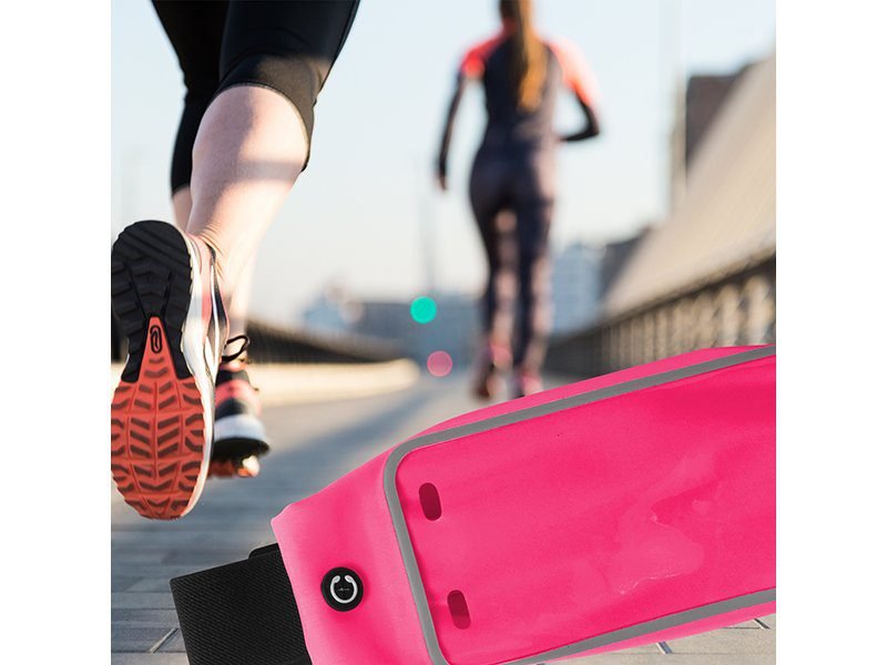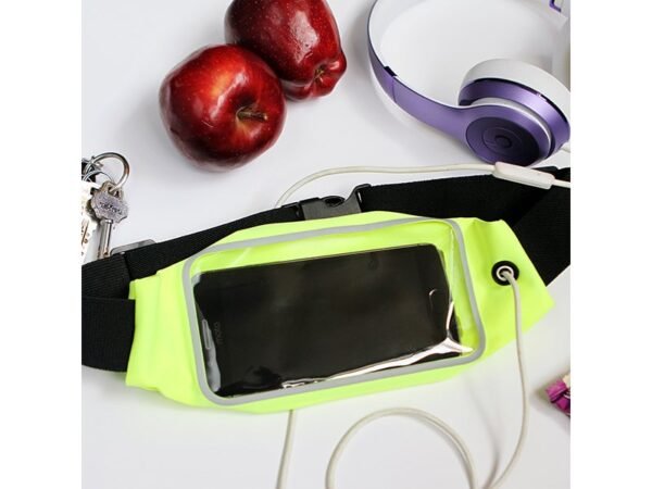 Cinturón o cangurera deportivo ajustable, con compartimento para celular y salida para audífonos.