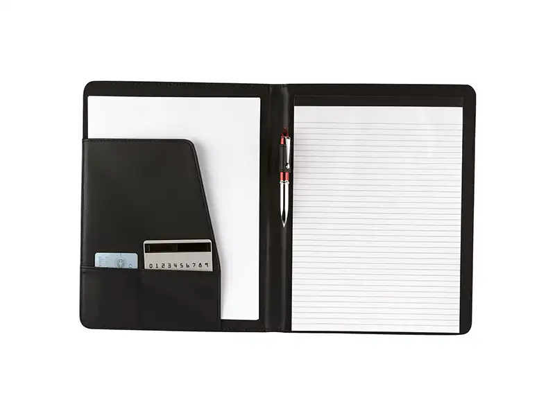 • Capacidad Ejecutiva: Incluye block A4 con 20 hojas rayadas, compartimento para documentos y ranuras para tarjetas de presentación.