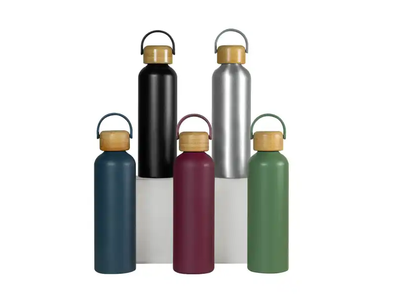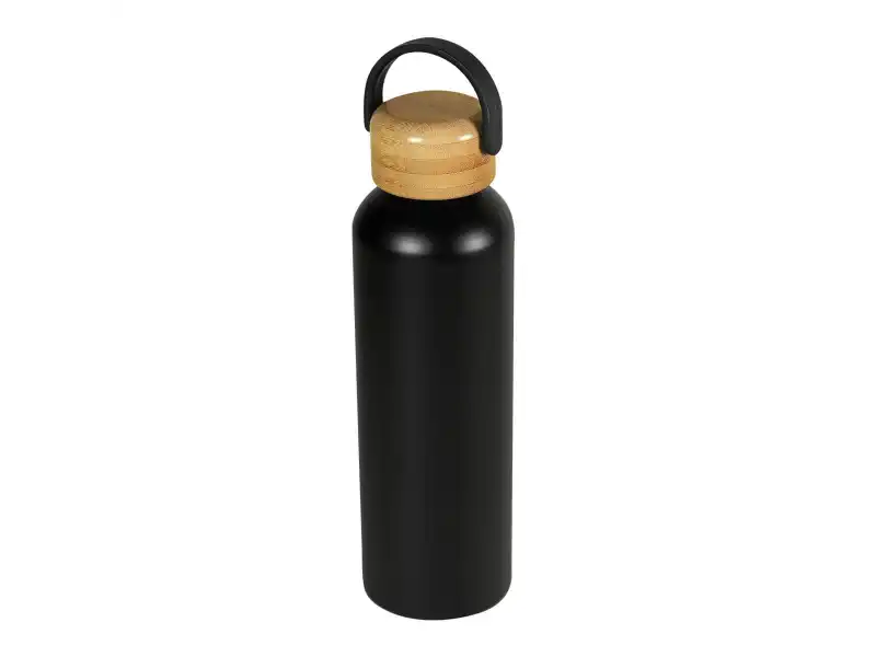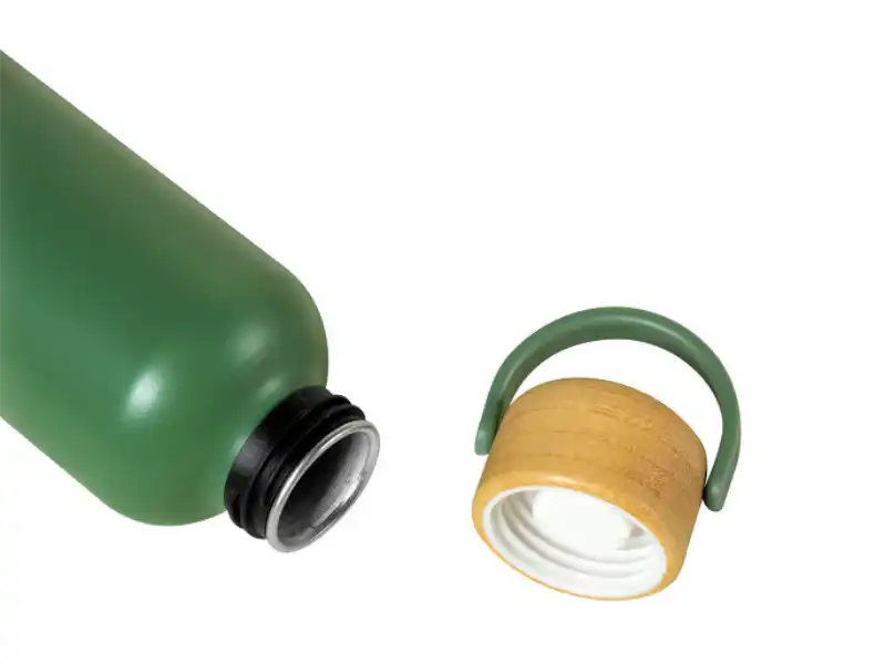 • Tapa de bambú natural con cierre de rosca y asa de plástico integrada.