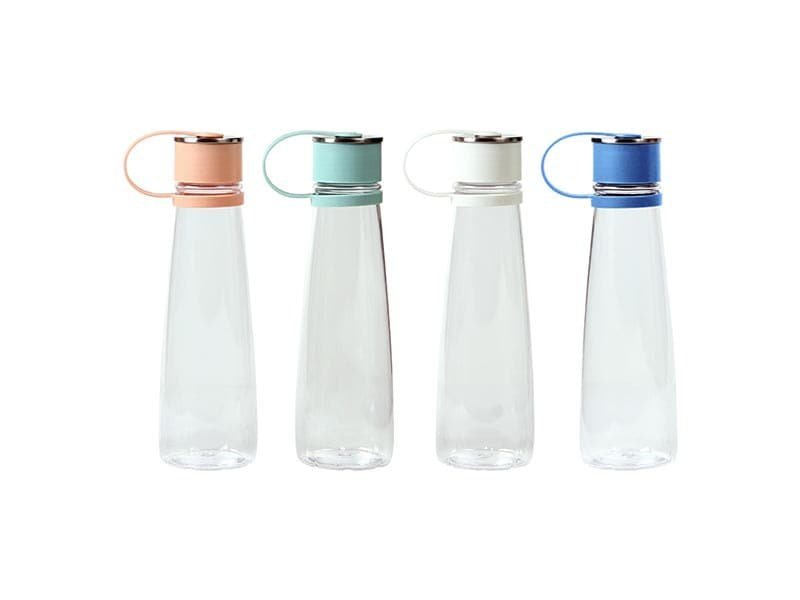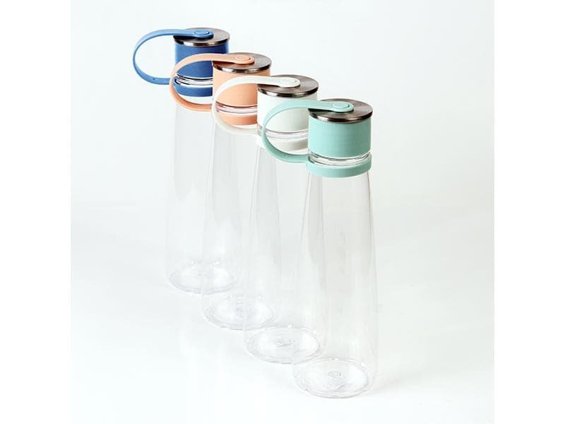 Cilindro de policarbonato con tapa en polipropileno y detalle en metal, fabricado con materiales de grado alimenticio,