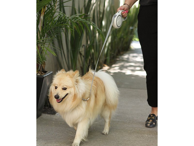 • Correa retráctil con extensión de 5 metros para máxima libertad.