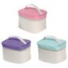 Disponible en tres colores atractivosmorado, rosa claro y verde aqua – esta cosmetiquera se adapta a diferentes estilos y preferencias. Su área de personalización permite imprimir el logo o mensaje de tu empresa, convirtiéndola en un excelente regalo promocional para eventos corporativos, campañas de fidelización o lanzamientos de productos.