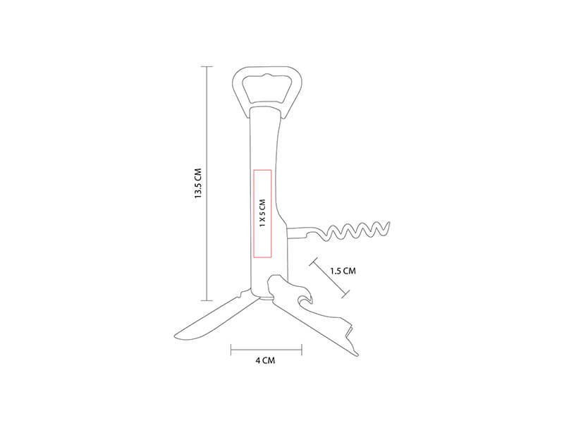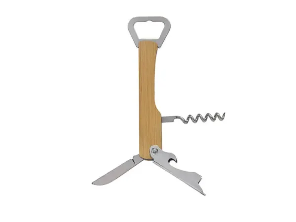 Destapador multifuncional. Incluye sacacorchos, destapador y navaja para abrir botellas.