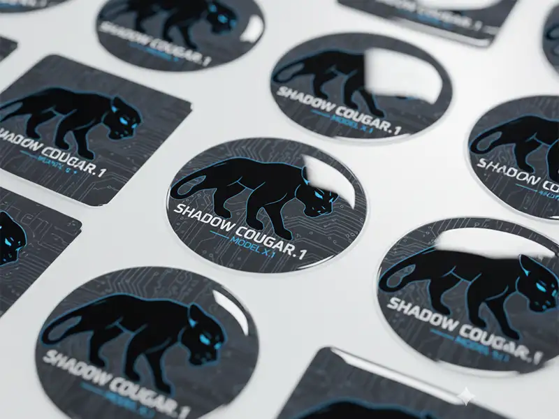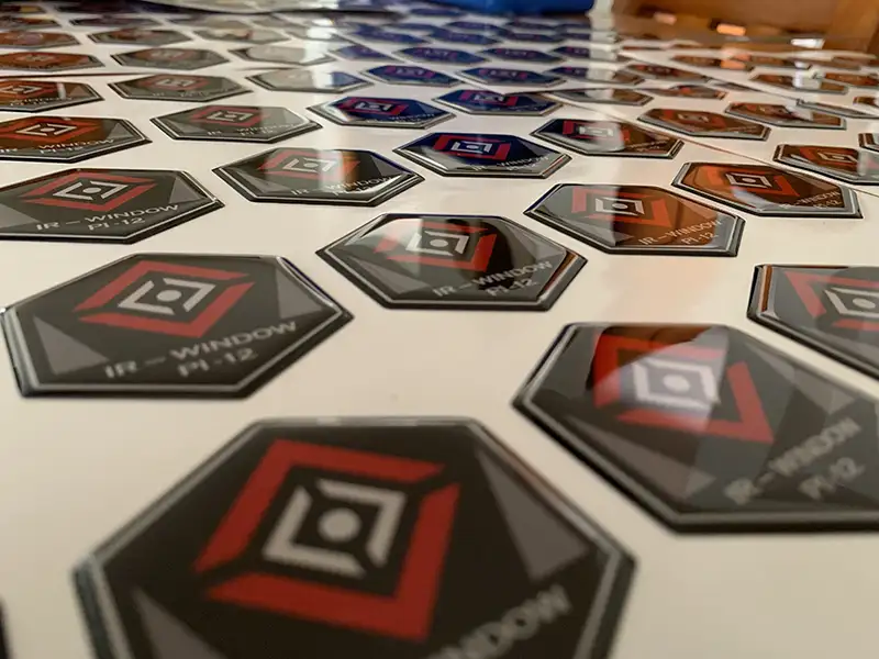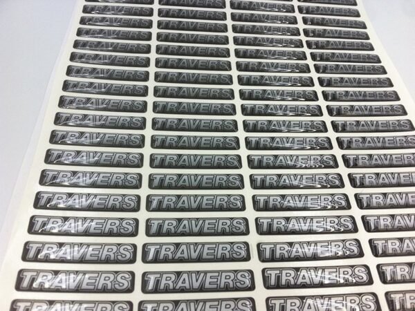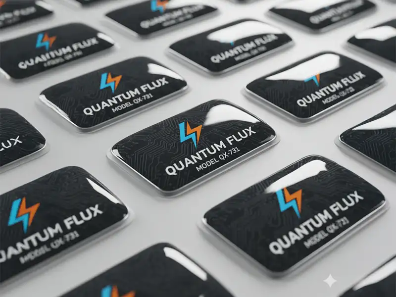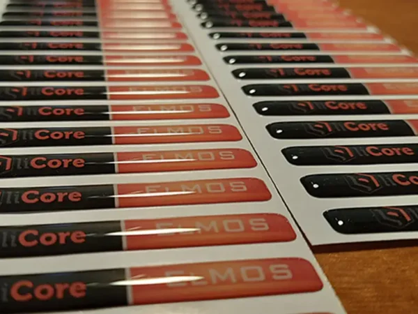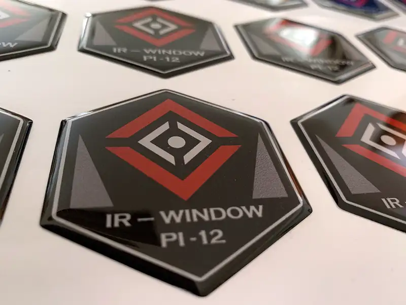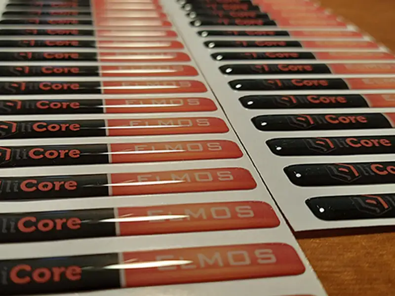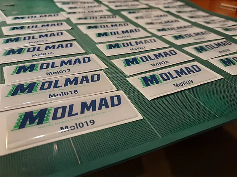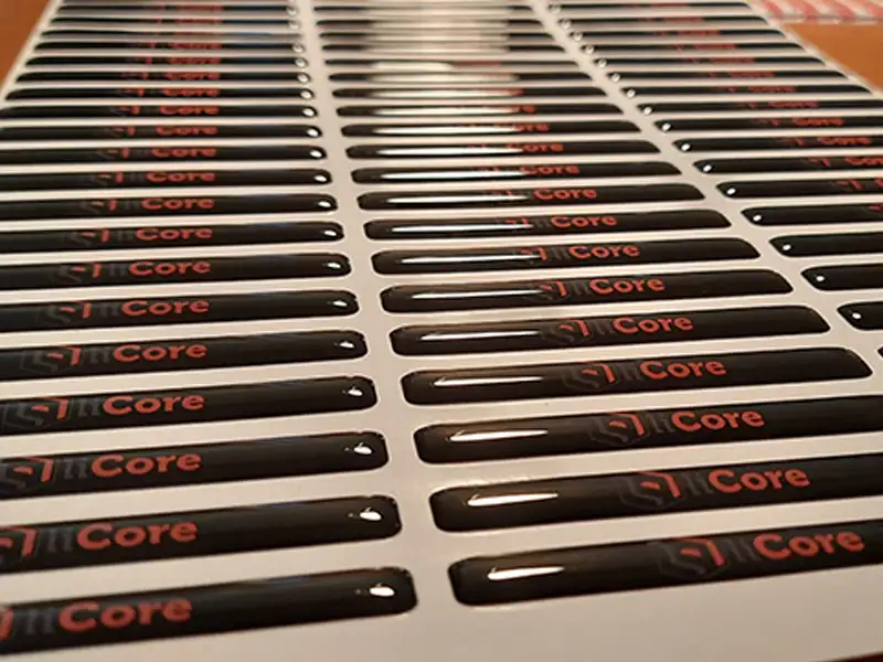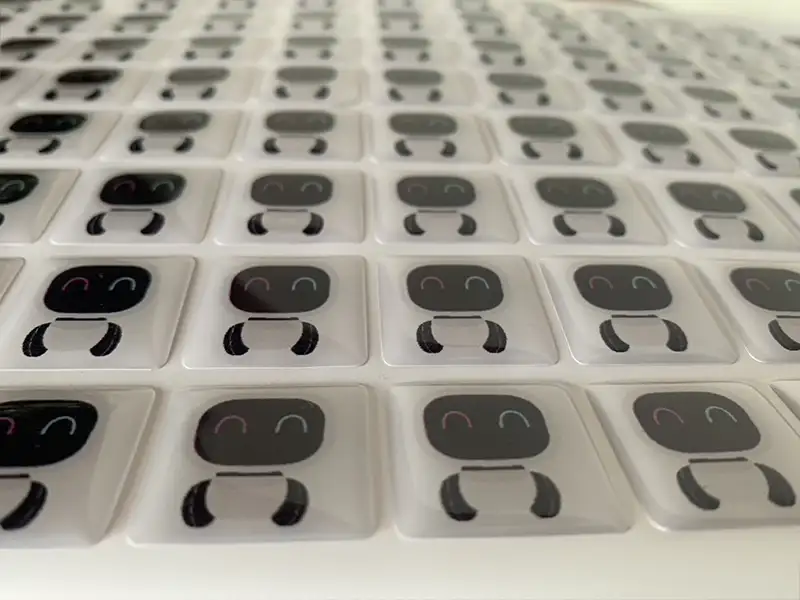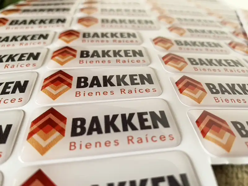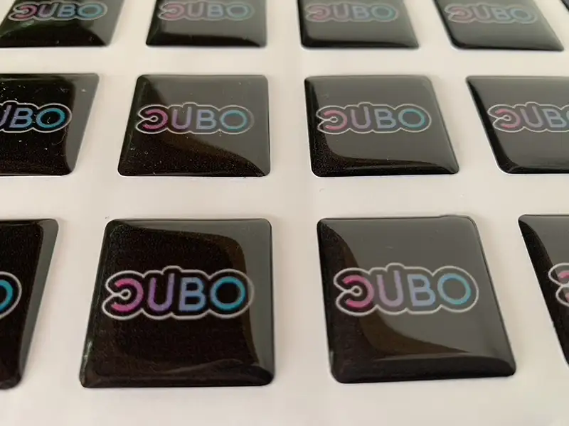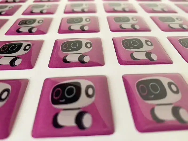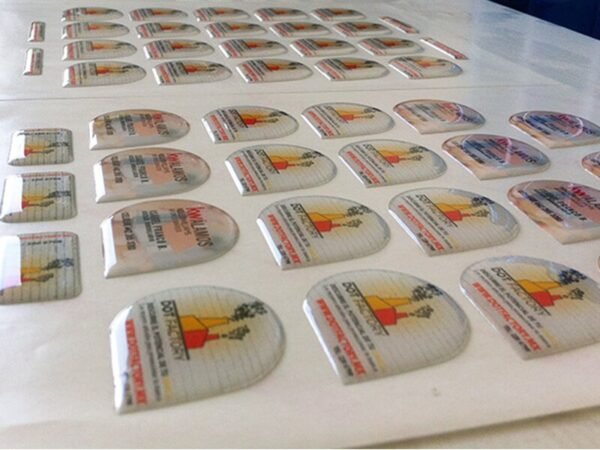 Etiquetas adhesivas en gota de resina, impresas a todo color.
