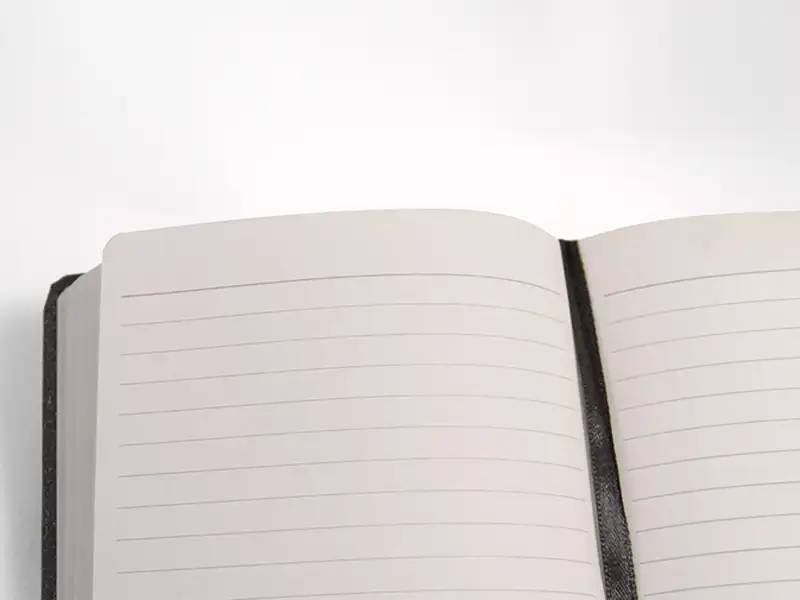 Libreta ecológica con cubierta dura de cartón. Banda elástica y separador; con 80 hojas rayadas.