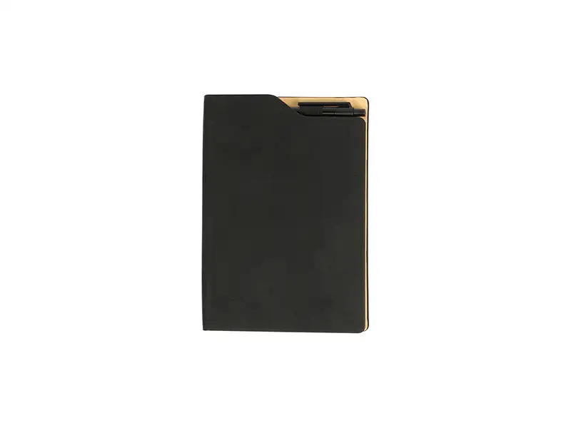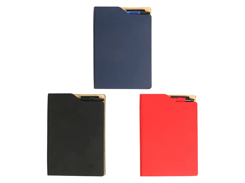 • Incluye bolígrafo coordinado y elástico sujetador integrado.