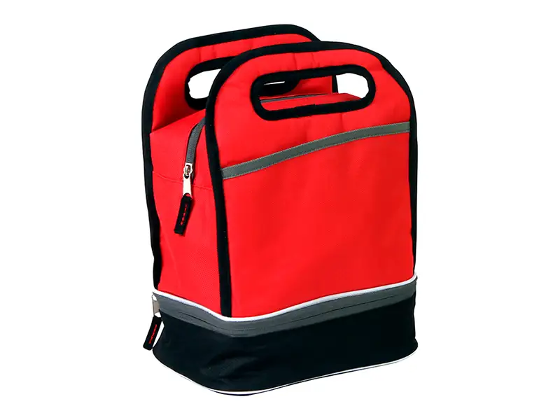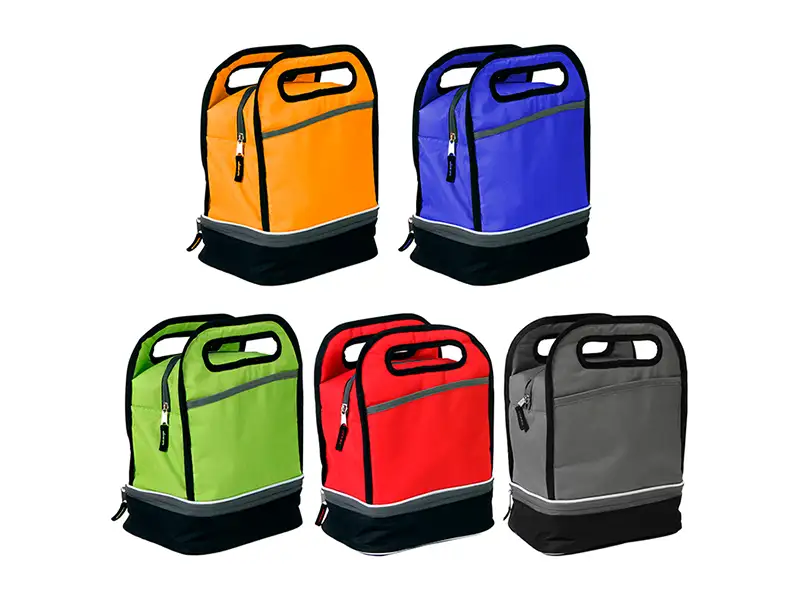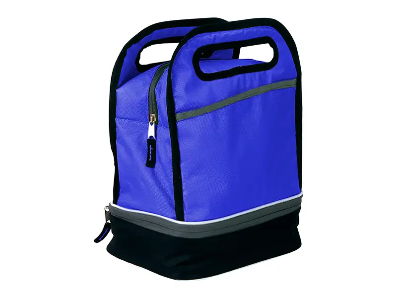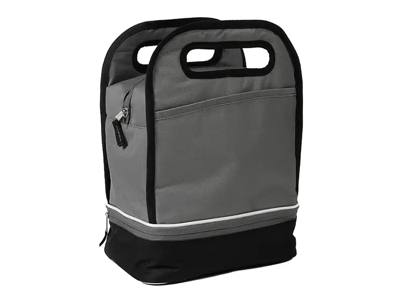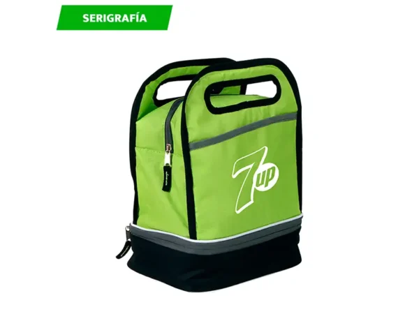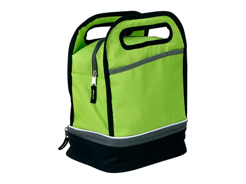 Lonchera fabricada en poliéster 600D con forro de PEVA y compartimento doble,