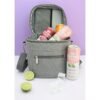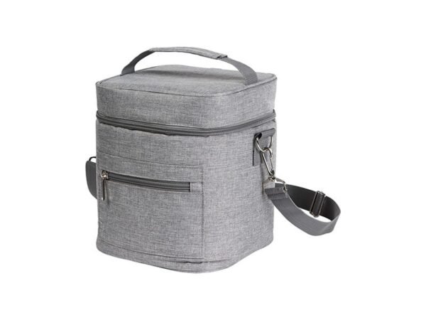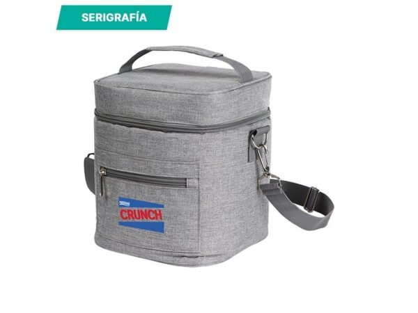 Lonchera térmica fabricada en poliéster con forro de aluminio, con bolsillo frontal,