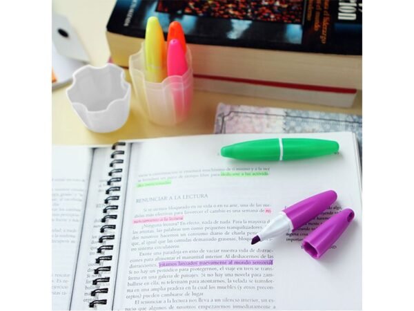 Juego de 5 marca textos con estuche de plástico, color blanco translucido.