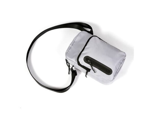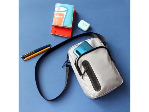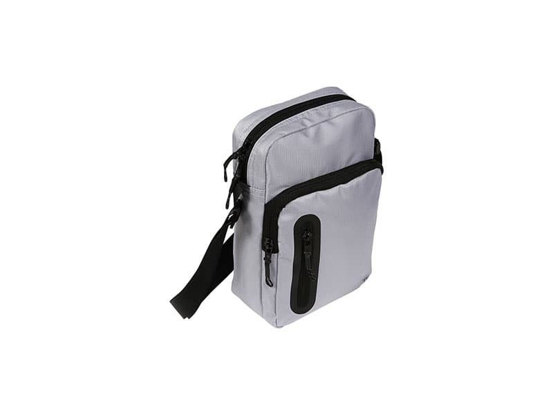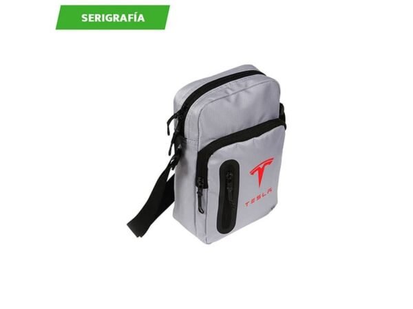 Mochila de hombro fabricada en ripstop y curpiel, con cierre frontal y bolsa trasera con velcro.