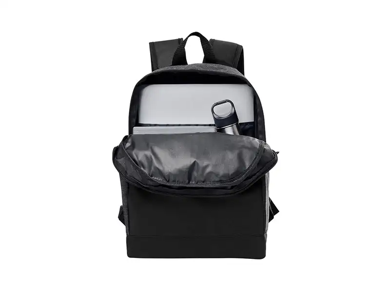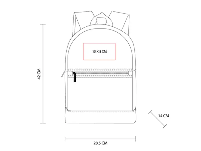 Bolsa principal y bolsa frontal con cierre. Bolsillos laterales. Incluye compartimento para laptop de 15″.