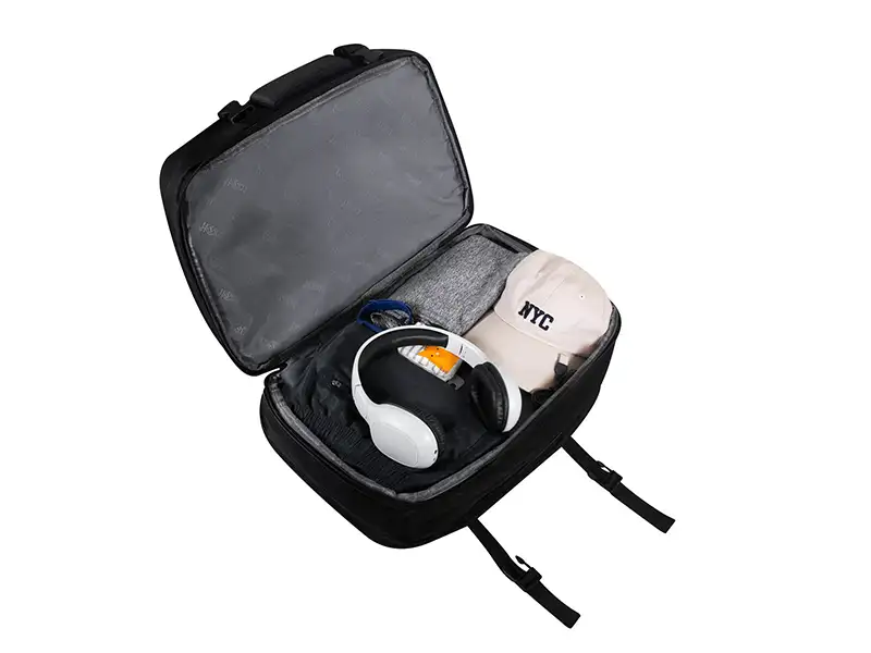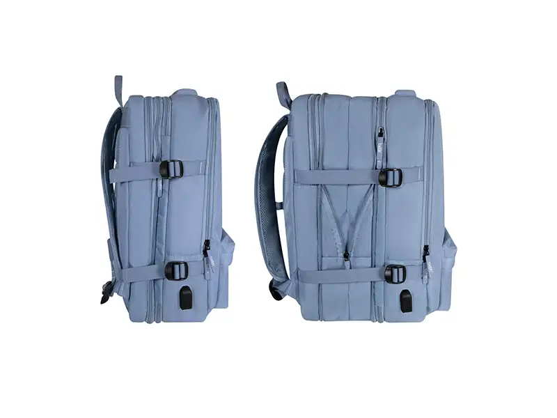 • Arquitectura de Volumen Expandible: Diseño técnico que permite ampliar la profundidad de 16 cm a 27 cm, adaptando la capacidad de carga según los requerimientos de almacenamiento diario o de viaje.