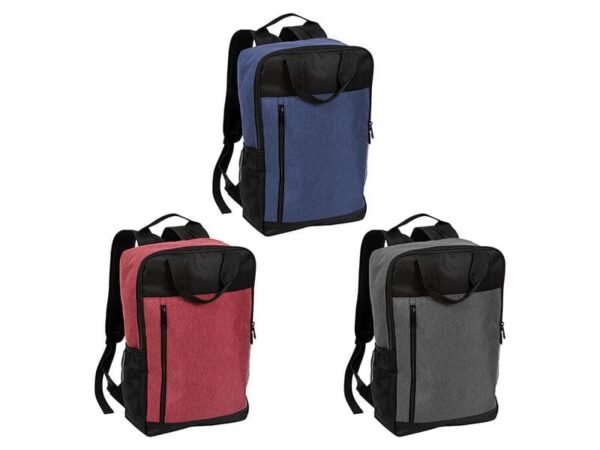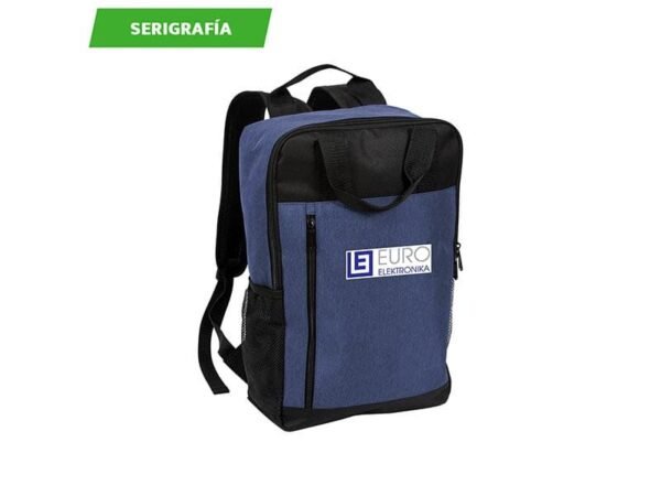 Mochila backpack fabricada en poliéster, con 1 bolsillo frontal y 2 bolsillos laterales de malla.