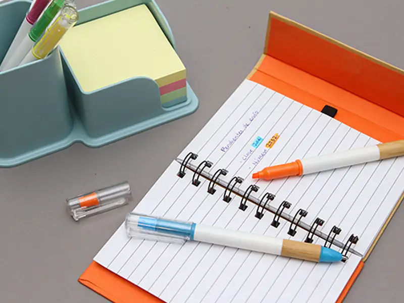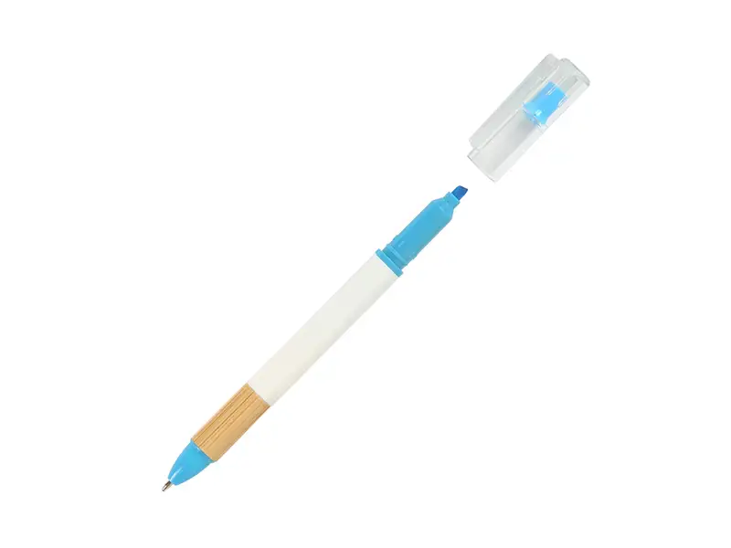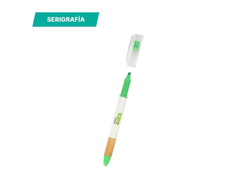 Bolígrafo 2 en 1 con acción giratoria y marca textos con tapa traslúcida. Barril hecho de