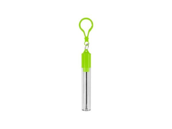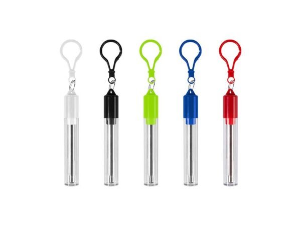 Popote de acero inoxidable retráctil con cepillo limpiador, estuche de acrílico y arnés.