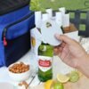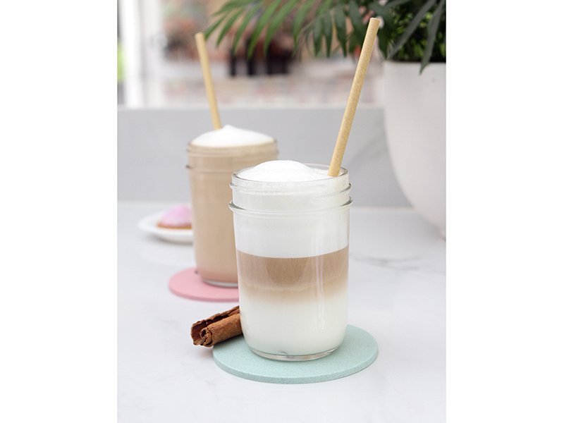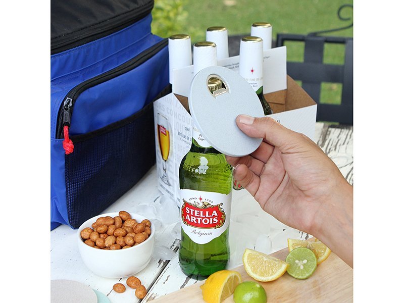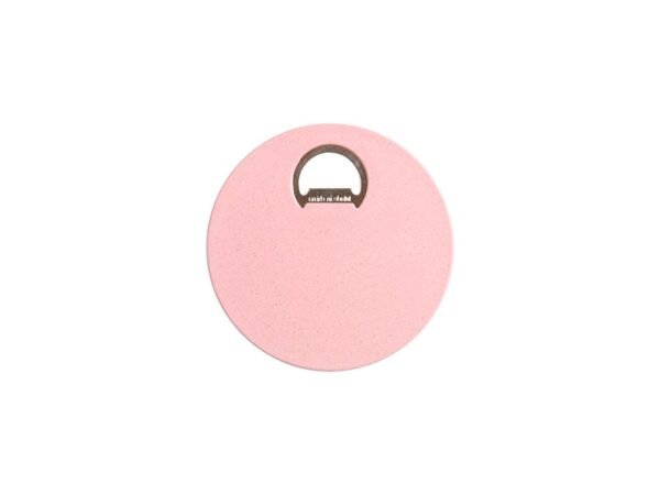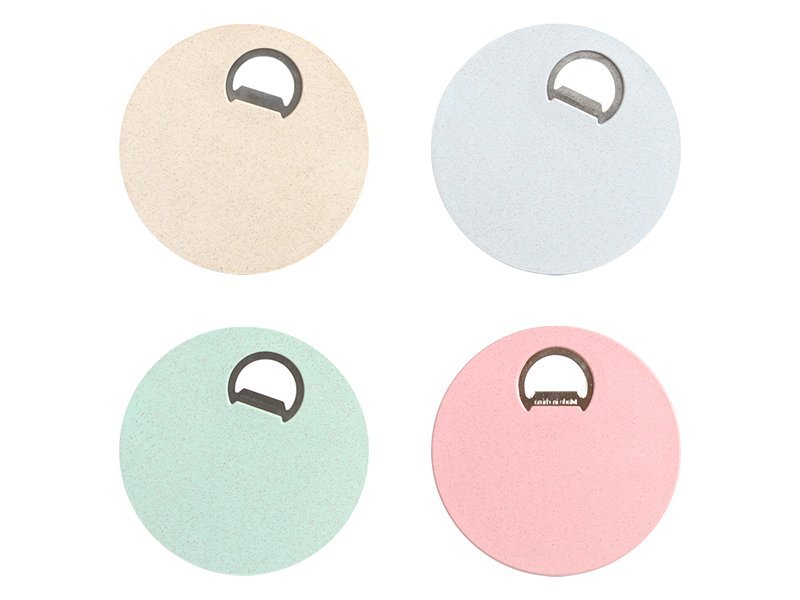 Porta vasos redondo fabricado en plástico ABS y fibra de trigo, con destapador metálico. Súper practico ya que es 2 en 1.