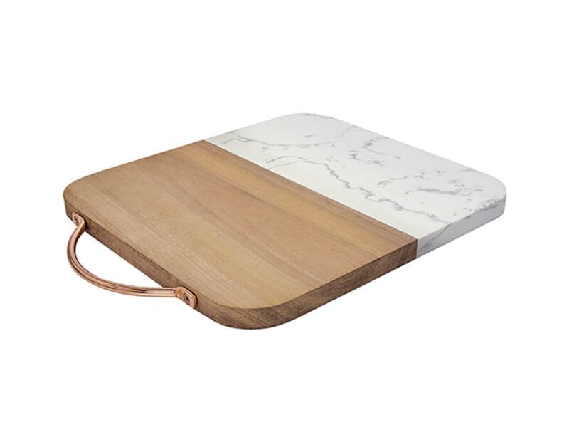 • Elegante combinación de madera natural y mármol pulido.