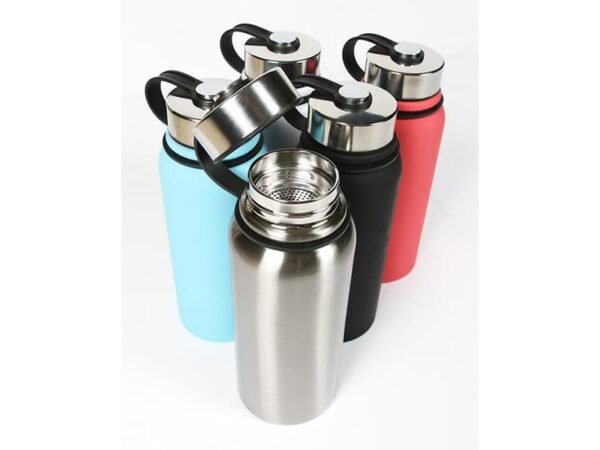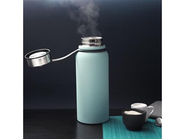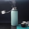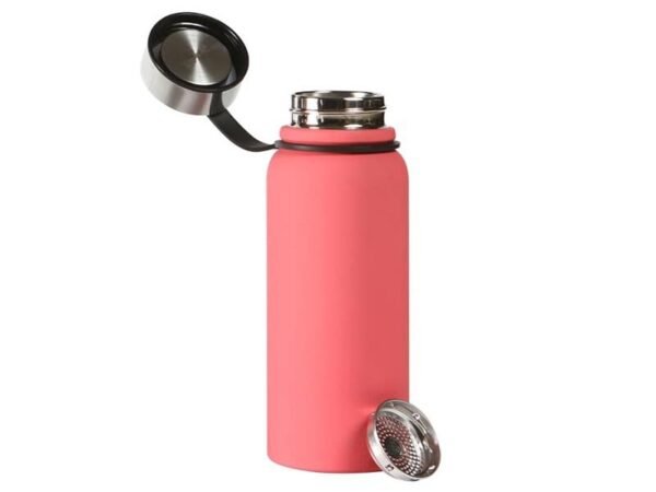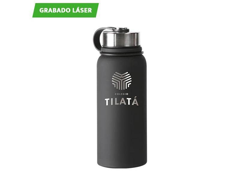 Termo de acero inoxidable doble pared con acabado tipo rubber, incluye rejilla para té, fabricado en materiales de grado