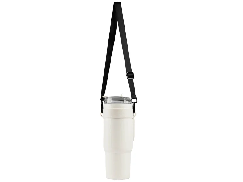 • Incluye asa plegable y correa para hombro ajustable con broches metálicos.
