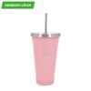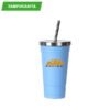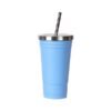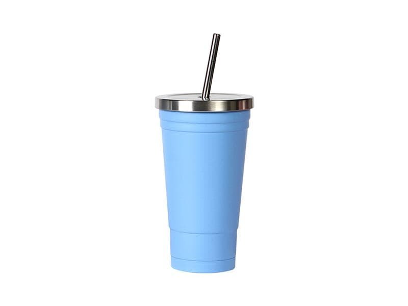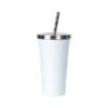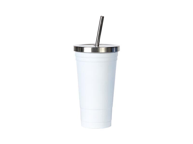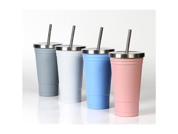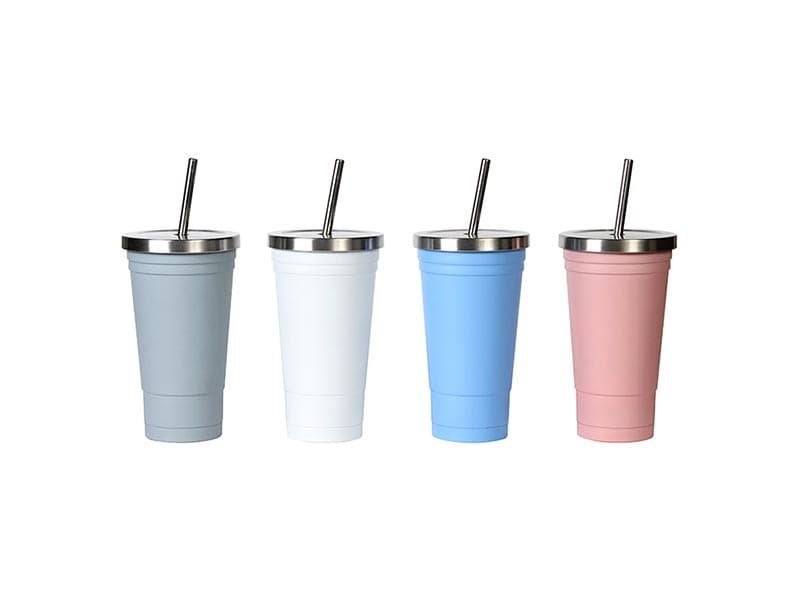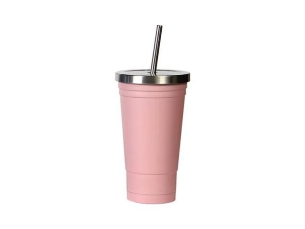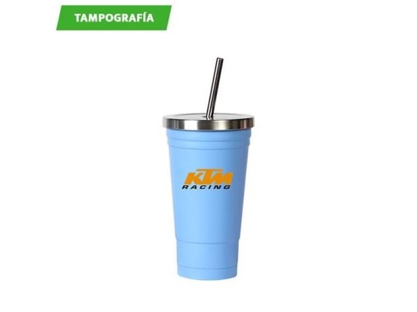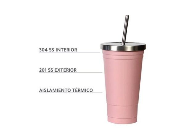Vaso de acero inoxidable doble pared con tapa y popote metálicos, fabricado en