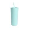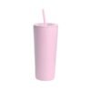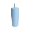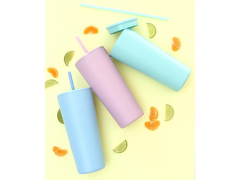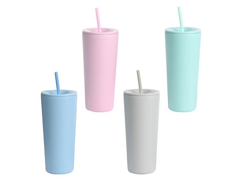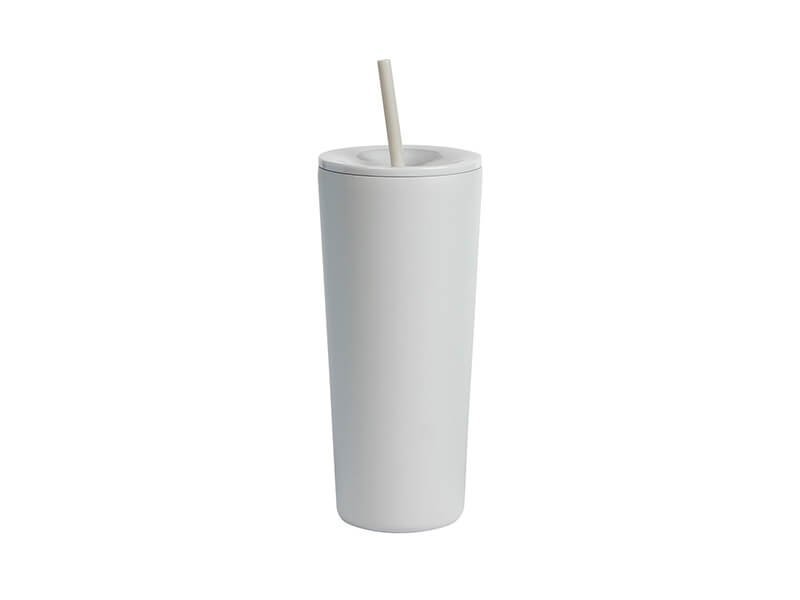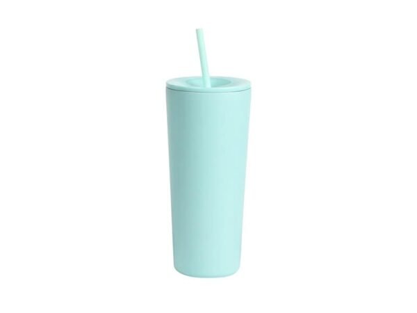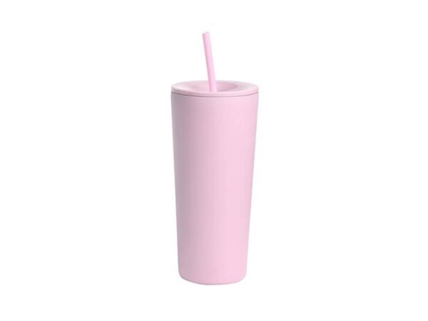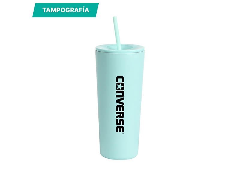 Vaso de acero inoxidable doble pared con tapa de plástico tipo rosca, con popote.