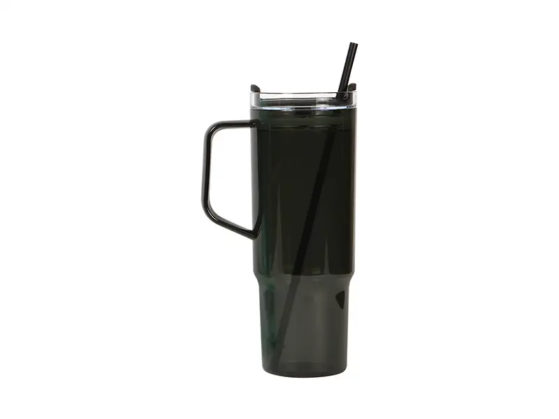 Máximo Impacto Visual: Vaso de gran formato con diseño integral en color sólido, incluyendo popote y agarradera ergonómica a juego.