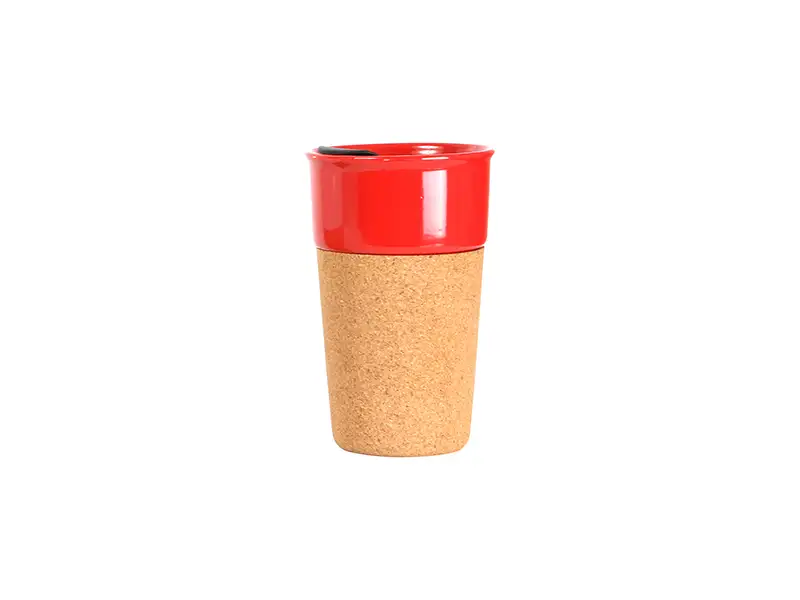 Vaso de color fabricado en cerámica con base de corcho y tapa de polipropileno (PP),