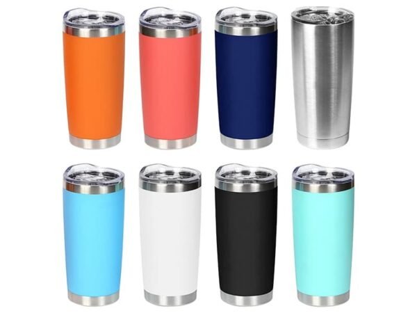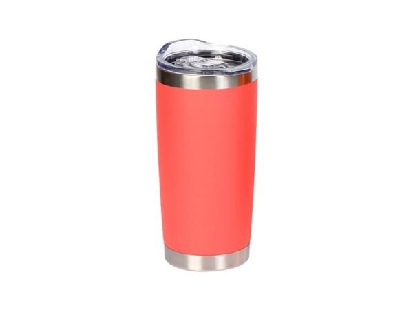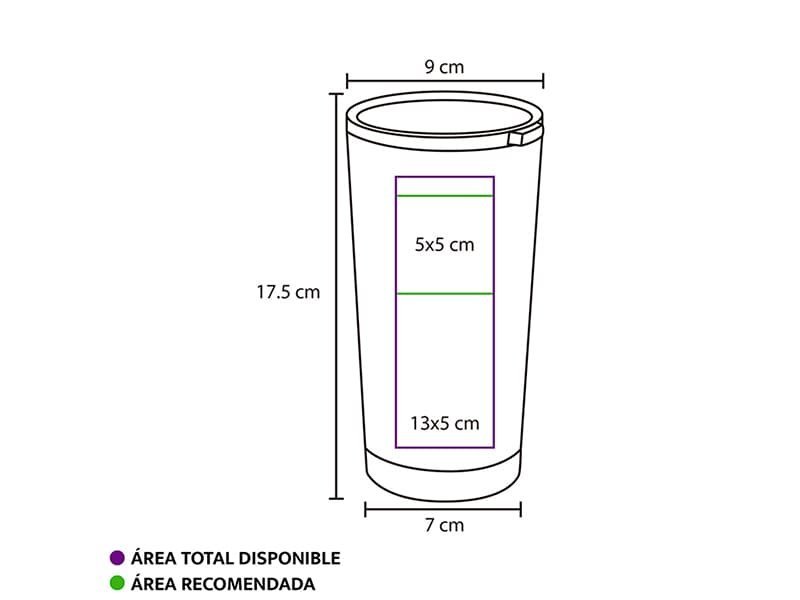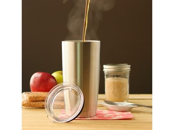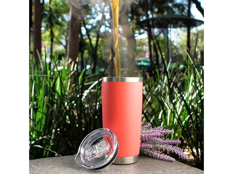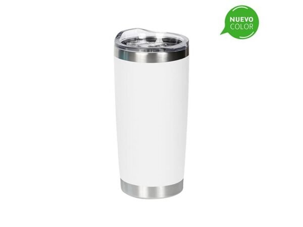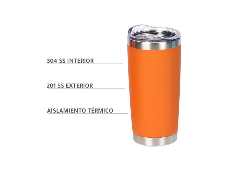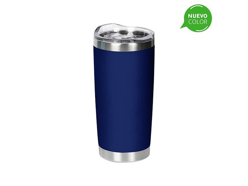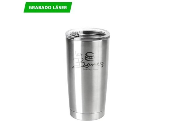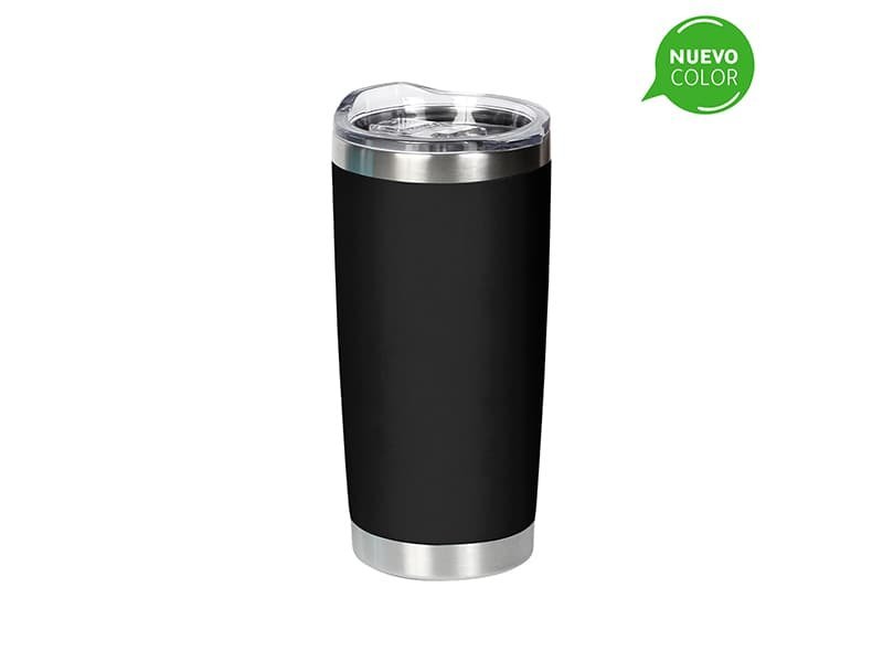 Vaso de acero inoxidable doble pared con tapa transparente, capacidad de 550 ml.